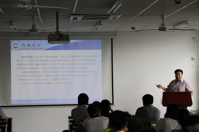 张经理从大学文化的内涵和文化的四大功能等方面谈起。他提到,文化的差异性和地域性就其实质来讲,是一种价值;文化的精神驱动对社会的团结、凝聚力的形成产生重要的力量,红军的高度凝聚力、目标的高度一致铸就红军长征胜利的精神力量。他表示,大学文化是知识、能力、人格的升华和结晶,是大学的灵魂,也是和谐校园建设的基础;大学的文化建设着眼点应放在以学术和人才培养为核心的历史文脉的传承及着力凝聚公司人心,形成共同的价值理念。他强调,材化公司师生在海大文化建设中应发挥积极的作用,坚持“办学以师为本,教学以生为本”,要把“尊重教师、善待员工”作为管理工作的文化理念。