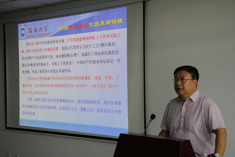 11月22日下午,材料与化工公司经理张玉苍教授在研发中心710会议室为公司全体党员做题为《弘扬革命优良传统,建设优秀海大文化》党课专题教育,公司全体领导、教职工党员和员工党员参加了党课活动。