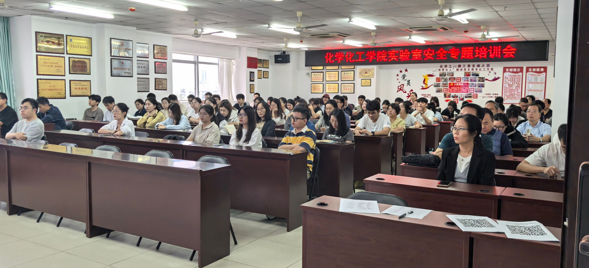 培训严格对标教育部实验室安全检查要求及海南省相关管理规范,系统构建“责任明晰-准入严格-风险可控”的全链条安全管理体系。通过深度剖析高校实验室典型事故案例,详细梳理了安全管理责任体系,明确了师生职责分工与实验室准入要求;深度解读实验室分级分类管理细则,明确不同风险等级实验室的防护标准与操作规范;针对化学品管理,详细梳理从采购审批、安全存储到废物处置的全流程管控要点;结合科研教学特点,提出教学项目和科研项目风险评估要求;同时规范仪器设备操作流程,强化日常检查与维护记录。通过“制度解读+案例警示+实操演练”的培训模式,切实增强了师生的安全责任意识。