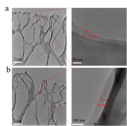 图2. 膜外表面与膜孔内表面PDA层的TEM图像