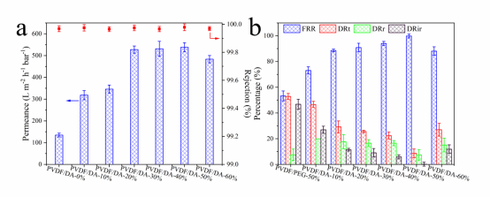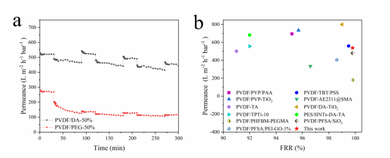 图3.膜的渗透通量和抗污染性能图像